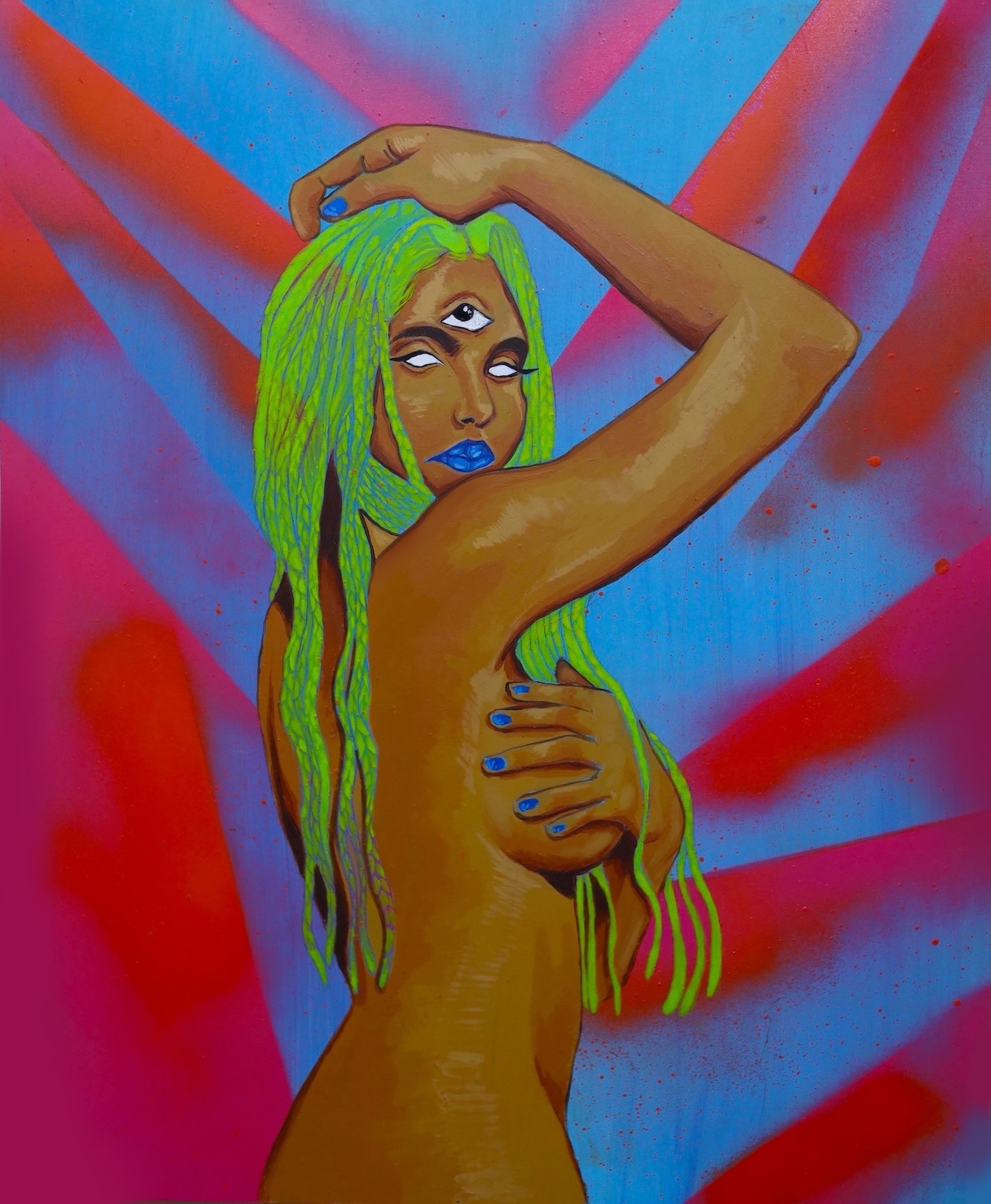 1 of 1, original painting, 15 x 18in, acrylic on wood (1 3/4 in thickness)