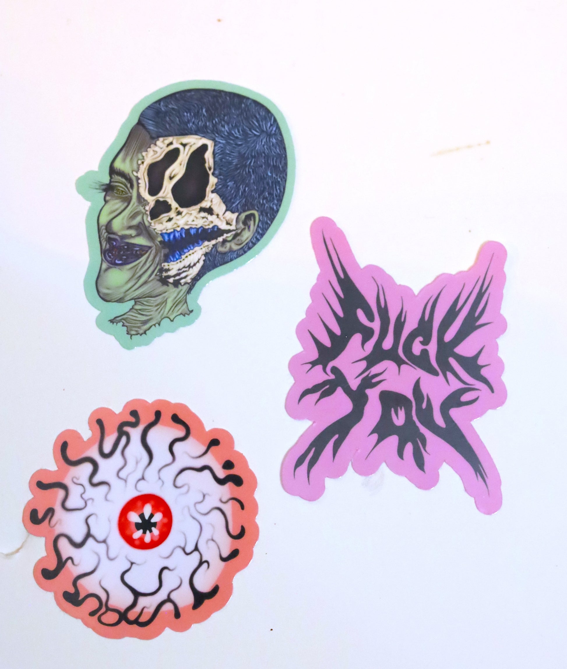 A trio that promises a punch and lasting impression. All 3 stickers included in pack.
